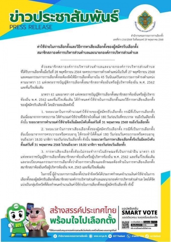 ประชาสัมพันธ์ค่าใช้จ่ายในการเลือกตั้งและวิธีการหาเสียงเลือกตั้ง
